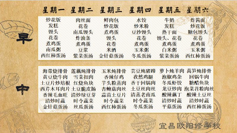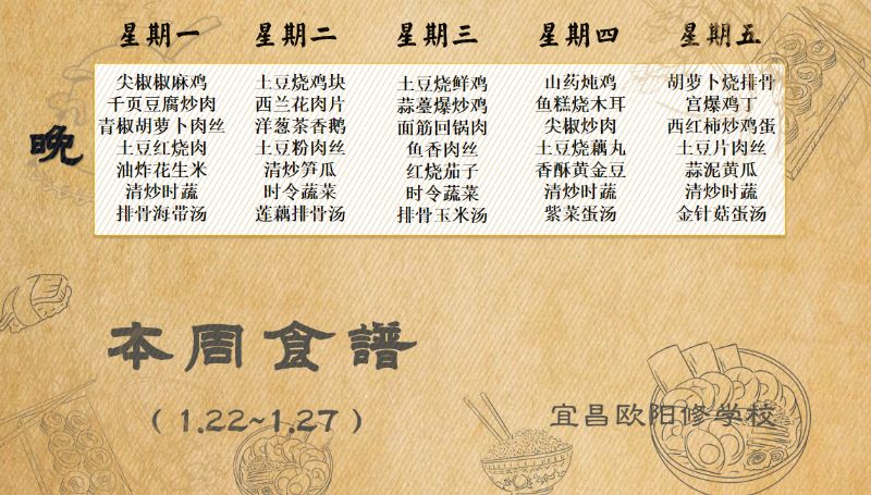 宜昌歐陽(yáng)修學(xué)校每周食譜(1月22日至1月27日)