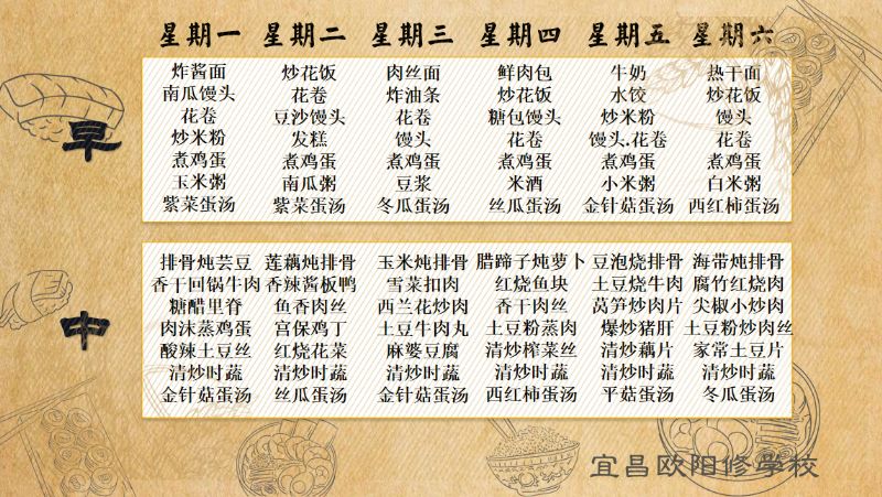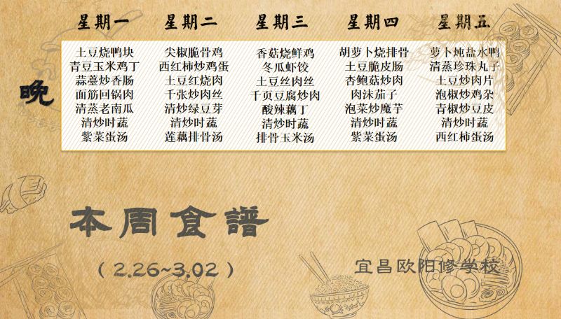 宜昌歐陽(yáng)修學(xué)校每周食譜(2月26日至3月2日)