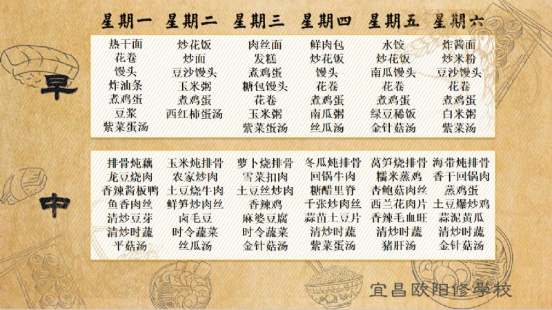 宜昌歐陽(yáng)修學(xué)校每周食譜(5月06日至5月12日)