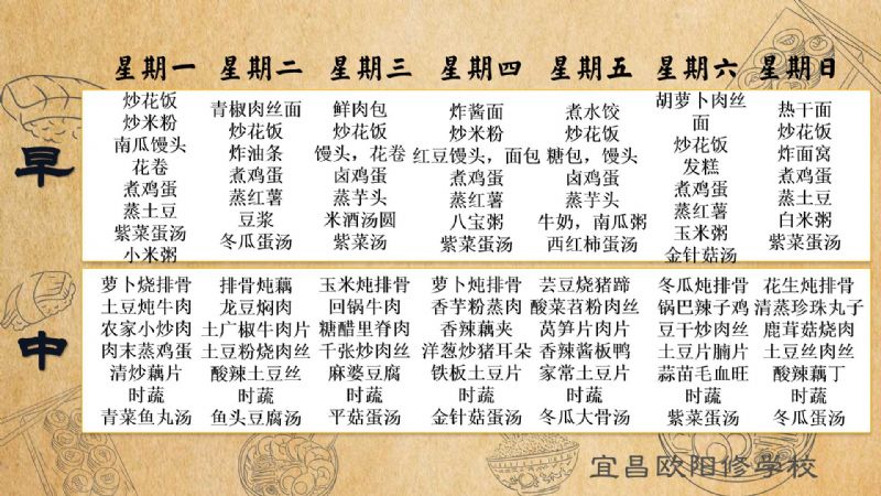 宜昌歐陽修學(xué)校每周食譜(12月2日至12月8日)