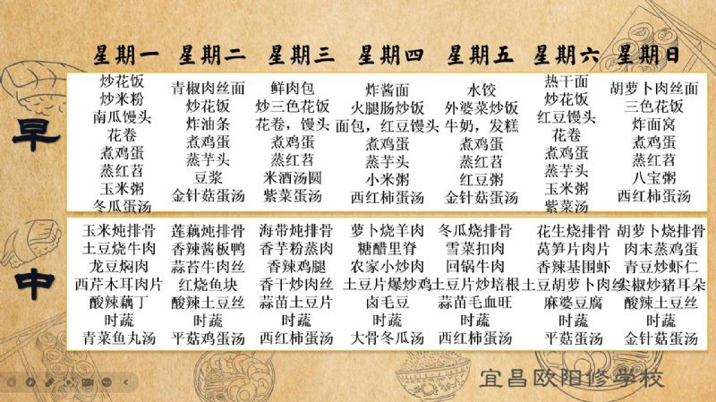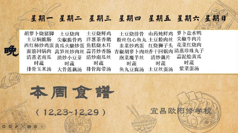 宜昌歐陽修學校每周食譜(12月23日至12月29日)