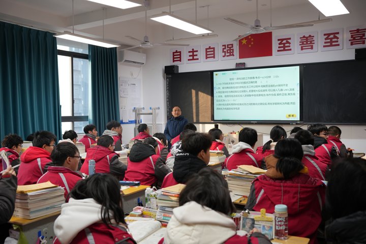 走進(jìn)304班課堂,一堂專注于原電池習(xí)題解析的課程映入眼簾。周老師妙語連珠地引導(dǎo)學(xué)生回顧了原電池的組成及其工作原理,學(xué)生們踴躍發(fā)言,課堂氛圍濃厚。隨后,周老師鼓勵學(xué)生進(jìn)行小組合作,并邀請小組代表上臺解析習(xí)題,教室掌聲與笑聲交織,學(xué)生們在輕松愉快的氛圍中汲取知識的養(yǎng)分。