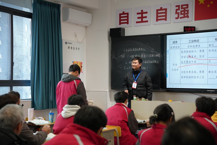 觀摩302班的地理課堂,張老師引領(lǐng)學(xué)生圍繞具體實(shí)例,深入剖析復(fù)雜工業(yè)布局之謎,并系統(tǒng)總結(jié)工業(yè)區(qū)位因素的變遷規(guī)律,以此作為課堂兩大核心議題,拉開了課程的精彩序幕。學(xué)生分為四個(gè)小組,展開了熱烈的討論。討論結(jié)束后,各組代表進(jìn)行發(fā)言。針對學(xué)生們拋出的種種疑問,張老師逐一深入探討,耐心解答,其解析深入淺出、條理清晰,重難點(diǎn)把握精準(zhǔn),破解巧妙。在這堂課中,張老師以生動的語言結(jié)合多媒體資料,有效鞏固學(xué)生知識,提升學(xué)習(xí)效果。