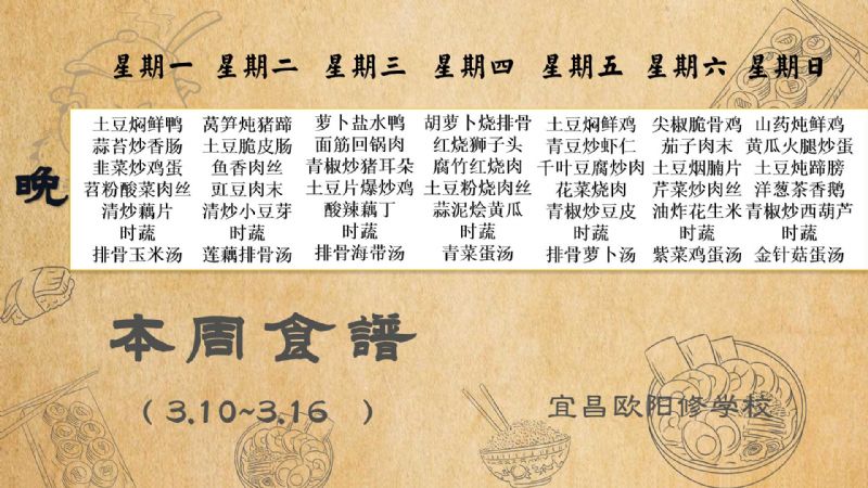 宜昌歐陽修學(xué)校每周食譜(3月10日至3月16日)