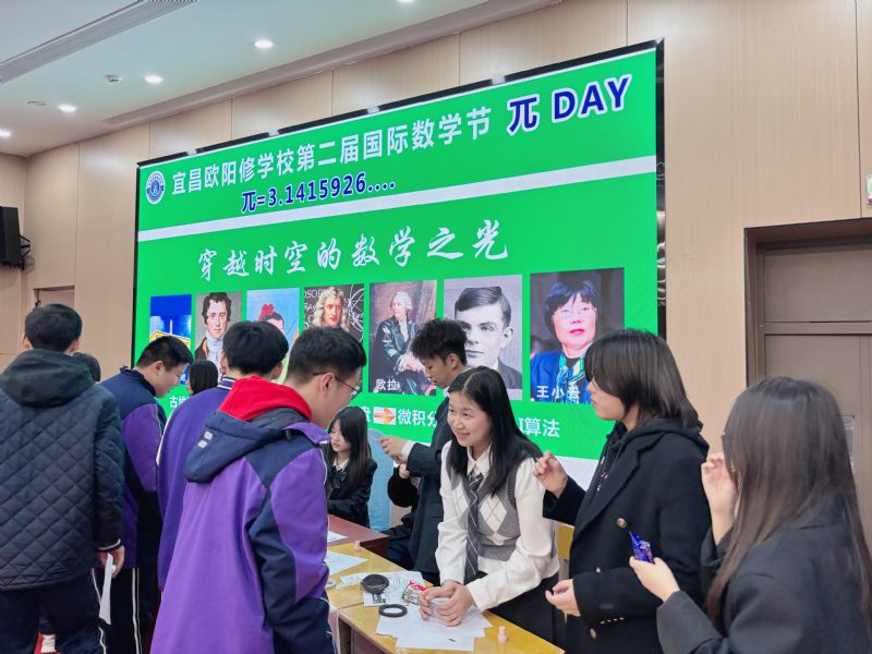 穿越時空長河,對話千年智慧,用公式叩響真理之門,用數(shù)字編織世界的經(jīng)緯,3月14日下午,宜昌歐陽修學(xué)校國際部和高中部高一年級學(xué)生一起以π之名,開啟了一場橫跨東西、連接古今的數(shù)學(xué)盛宴,校長陶三發(fā)為第二屆國際數(shù)學(xué)節(jié)致開幕詞,宜昌教育科學(xué)研究院高中數(shù)學(xué)教研員向立政老師與會指導(dǎo),為學(xué)生詳細解讀數(shù)學(xué)的魅力,國際部主任李翠銀宣布數(shù)學(xué)節(jié)活動流程, 雅思教師Helena老師 向同學(xué)們介紹英國學(xué)校舉辦國際數(shù)學(xué)節(jié)的主要途徑。本屆國際數(shù)學(xué)節(jié)由國際部學(xué)習(xí)委員Alyssa覃星雅同學(xué)和來自普高部101班的優(yōu)秀學(xué)生何金昊雙語主持。