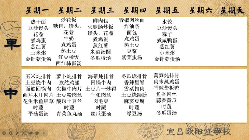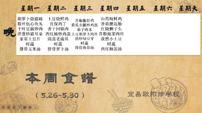 宜昌歐陽修學(xué)校每周食譜(5月26日至5月30日)