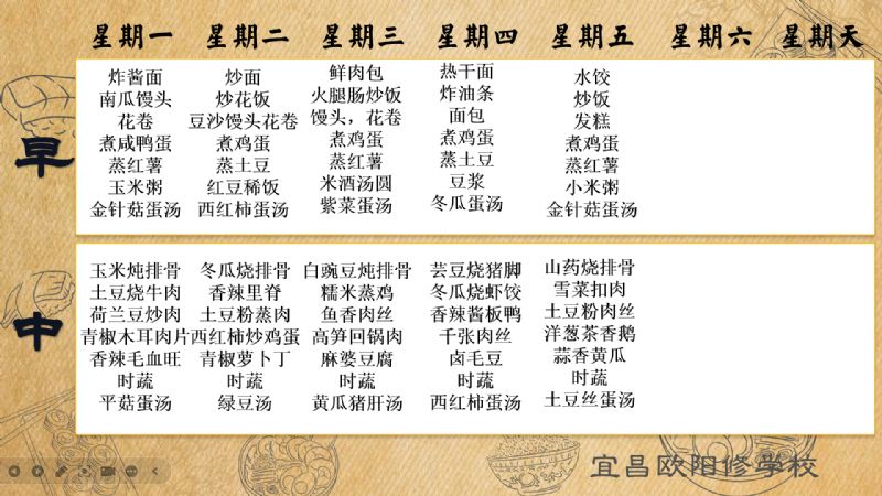 宜昌歐陽修學校每周食譜(6月2日至6月8日)