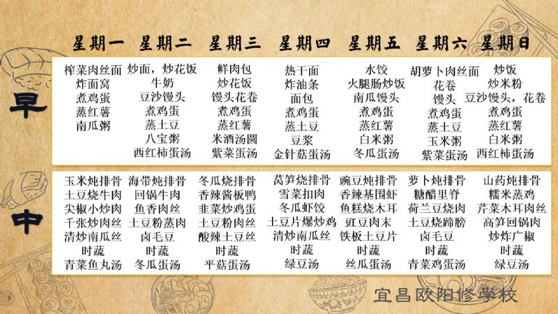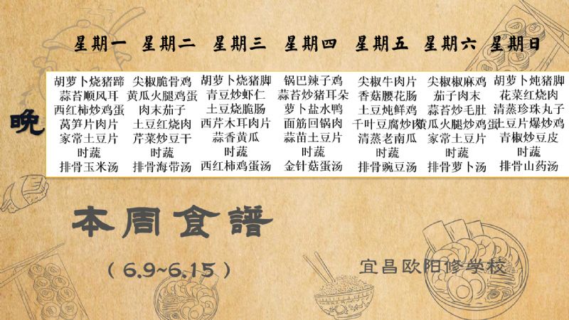 宜昌歐陽(yáng)修學(xué)校每周食譜(6月9日至6月15日)
