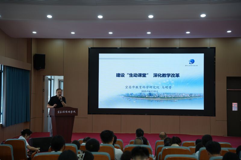 8月19日上午,馬院長以“建設(shè)生動課堂,深化教育改革”為題,從“生動課堂”建設(shè)的必要性、“生動課堂”的內(nèi)涵和特征、“生動課堂”的實施路徑三個方面作引領(lǐng)報告。他強調(diào),“強教必先強師,強師必先強課堂”,生動課堂建設(shè)是回應(yīng)時代對高質(zhì)量教育迫切需求的必然選擇。馬院長系統(tǒng)闡釋了生動課堂的核心內(nèi)涵——即以素養(yǎng)目標(biāo)為引領(lǐng),依托真實情境創(chuàng)設(shè)與學(xué)科實踐深化,激發(fā)學(xué)生深度思維和主動參與,最終呈現(xiàn)生機勃勃的課堂生態(tài),并進一步提出“四維聯(lián)動”實施路徑:以價值觸動為魂,深刻理解教學(xué)內(nèi)容蘊含的育人價值;以內(nèi)容聯(lián)動為基,注重知識的整合與綜合學(xué)習(xí);以思維觸動為要,通過實踐活動激發(fā)學(xué)生深度思考;以學(xué)習(xí)主動為本,關(guān)注學(xué)生差異,落實因材施教,調(diào)動學(xué)習(xí)積極性。這些內(nèi)容為教師如何上好生動課堂指明了努力方向和具體路徑。馬院長用一個個鮮活的案例將我們帶入一個個真實的教育場景中,為老師們帶來了一場兼具深度與溫度的盛宴。