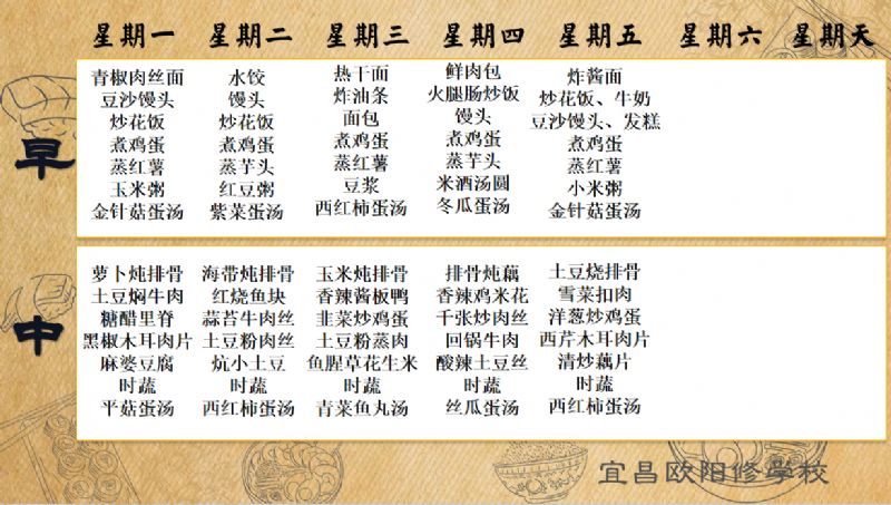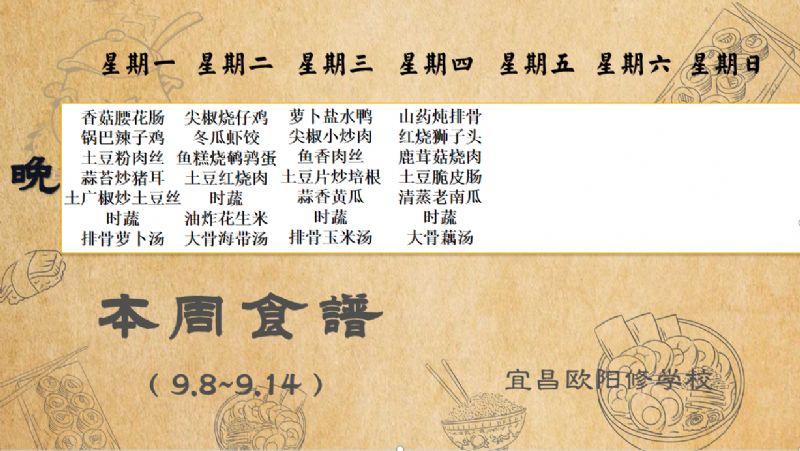 宜昌歐陽修學(xué)校每周食譜(9月8日至9月14日)