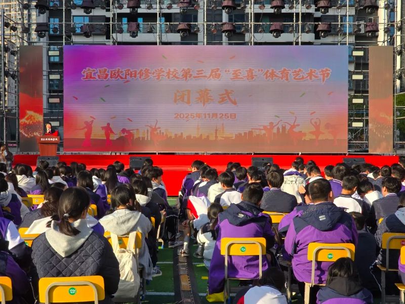 隨后,喬明木副校長(zhǎng)鄭重宣布:“宜昌歐陽修學(xué)校第三屆‘至喜’體育藝術(shù)節(jié)閉幕!”話音落下,全場(chǎng)掌聲雷動(dòng)。在激昂的旋律中,各班代表隊(duì)邁著整齊的步伐有序退場(chǎng),隊(duì)形整齊劃一,展現(xiàn)出歐校學(xué)子良好的精神風(fēng)貌。